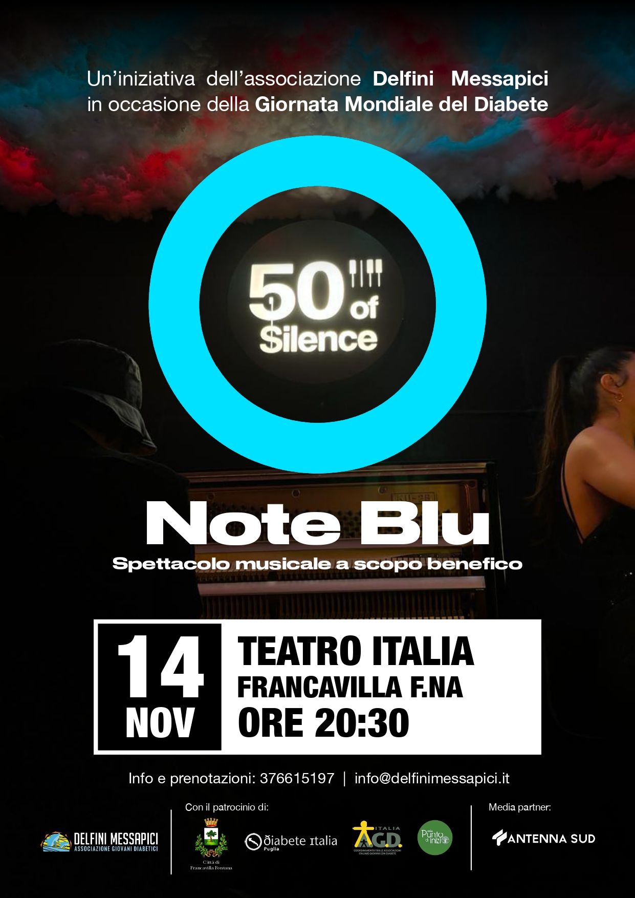 Cinema Teatro Italia, Francavilla Fontana Venerdì 14 novembre 2025 – ore 20:30 In occasione della Giornata Mondiale del Diabete, vi invitiamo a partecipare all'evento musicale Note Blu per vivere un’emozione unica con lo spettacolo “50 Minutes of Silence” e sostenere la ricerca sul Diabete Tipo 1. Immagina un cielo che si tinge di colori, un orizzonte ...